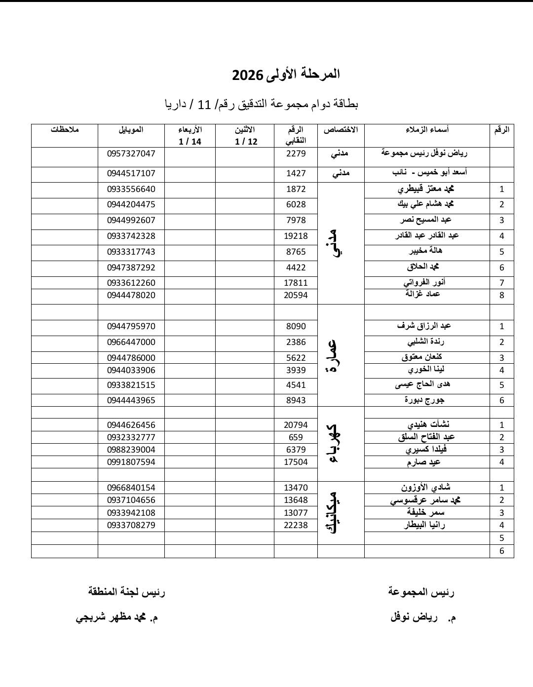السادة الزملاء تجدون جداول تدقيق منطقة داريا الجديدة